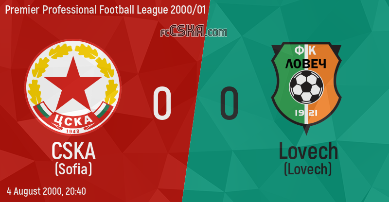 CSKA draw against Lovech (Lovech) with result 0:0 in match from 1st round of Premier Professional Football League 2000/01 played on 4 August 2000 at 20:40 on „Bulgarska armia“ stadium, in Sofia.