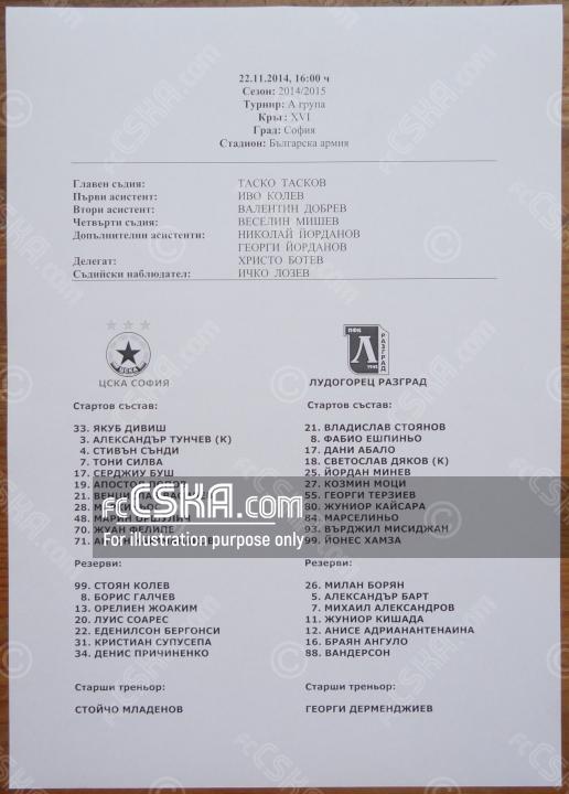 CSKA draw against Ludogorets 1945 (Razgrad) with result 1:1 in match from 16th round of „А“ Football Group 2014/15 played on 22 November 2014 at 16:00 on „Bulgarska armia“ stadium, in Sofia. goalscorer for the army men was Aleksandar Tunchev (25′).