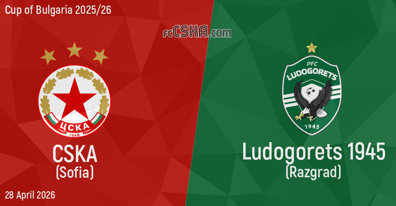 CSKA will play with Ludogorets in match from Semifinals — Second Leg of Cup of Bulgaria 2025/26 on 28 April 2026 on „Vasil Levski“ stadium, in Sofia.