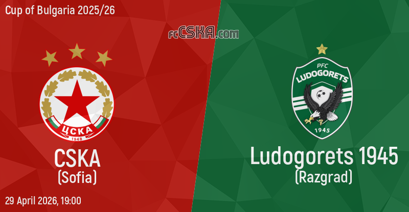 CSKA will play with Ludogorets in match from Semifinals — Second Leg of Cup of Bulgaria 2025/26 on 29 April 2026 at 19:00 on „Vasil Levski“ stadium, in Sofia.