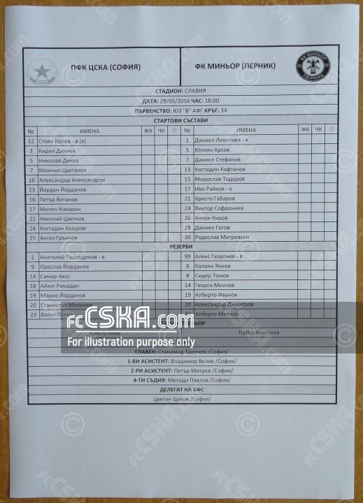 CSKA won against Minyor (Pernik) with result 6:1 in match from 34th round of South-West „V“ Group 2015/16 played on 29 May 2016 at 18:00 on „Slavia“ stadium, in Sofia. goalscorers for the army men were Nikolay Dichev (13′), Yordan Yordanov (32′), Nikolay Tsvetkov (34′ and 52′), Kostadin Hazurov (61′) and Mario Yordanov (71′).