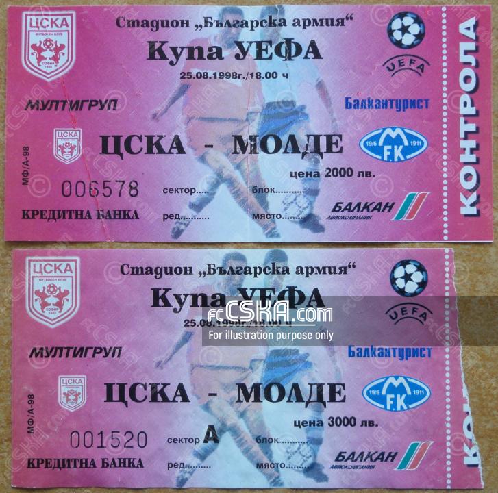 CSKA won against Molde FK with result 2:0 in match from II preliminary round — Second Leg of UEFA Cup 1998/99 played on 25 August 1998 on „Bulgarska armia“ stadium, in Sofia. goalscorers for the army men were Milen Petkov (33′) and Valentin Stanchev (60′).