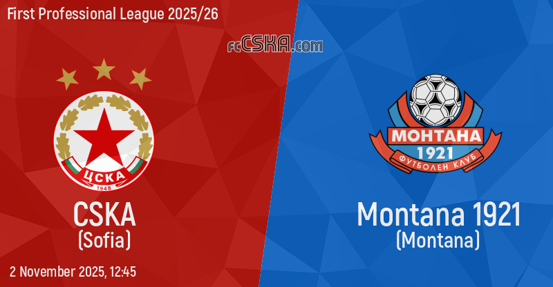 CSKA will play with Montana in match from 14th round of First Professional League 2025/26 on 2 November 2025 at 12:45 on „Vasil Levski“ stadium, in Sofia. the match will translated live on „Diema sport”.