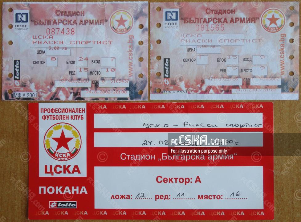 CSKA won against Rilski sportist (Samokov) with result 2:0 in match from 3rd round of Premier Professional Football League 2002/03 played on 24 August 2002 at 20:00 on „Bulgarska armia“ stadium, in Sofia. goalscorers for the army men were Hristo Yanev (18′) and Velizar Dimitrov (21′ from penalty).