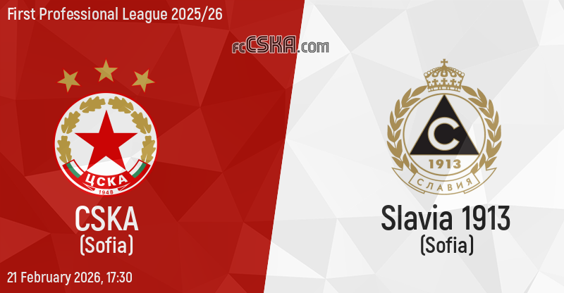CSKA will play with Slavia in match from 22nd round of First Professional League 2025/26 on 21 February 2026 at 17:30 on „Vasil Levski“ stadium, in Sofia.