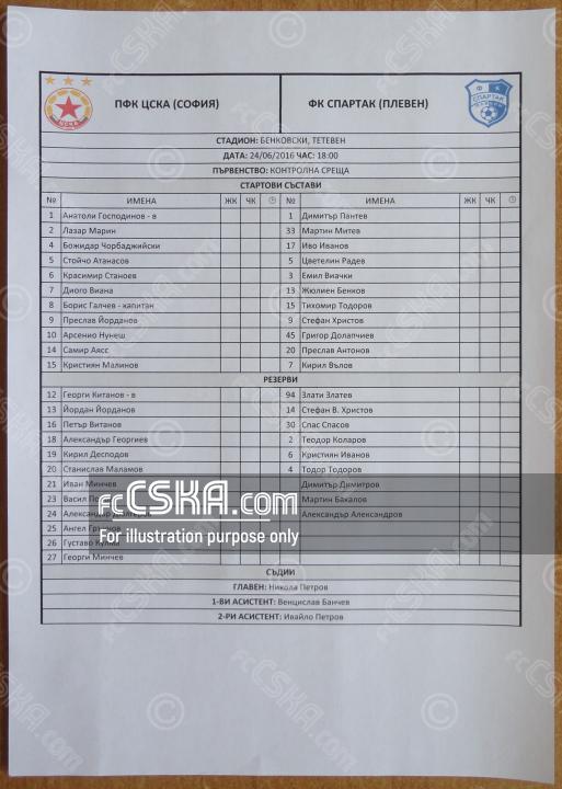 CSKA lost against Spartak (Pleven) with result 0:1 in match from Friendly games 2016/17 played on 24 June 2016 at 18:00