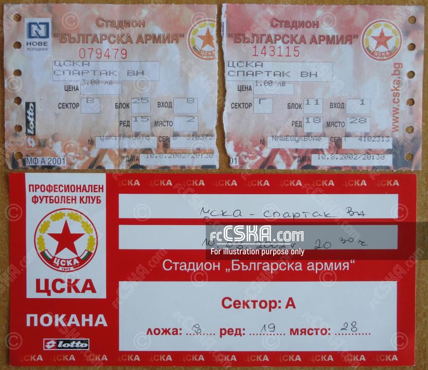 CSKA won against Spartak (Varna) with result 3:1 in match from 1st round of Premier Professional Football League 2002/03 played on 10 August 2002 at 20:30 on „Bulgarska armia“ stadium, in Sofia. goalscorers for the army men were Emil Gargorov (20′ from penalty), João Paulo Brito (37′) and Velizar Dimitrov (63′).