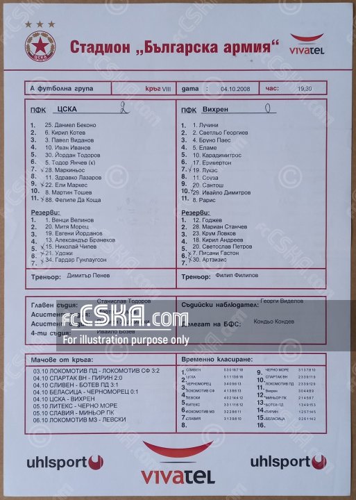CSKA won against Vihren (Sandanski) with result 2:0 in match from 8th round of „А“ Football Group 2008/09 played on 4 October 2008 at 19:30 on „Bulgarska armia“ stadium, in Sofia. goalscorers for the army men were Shaloze Udoji (50′) and Kiril Kotev (92′).