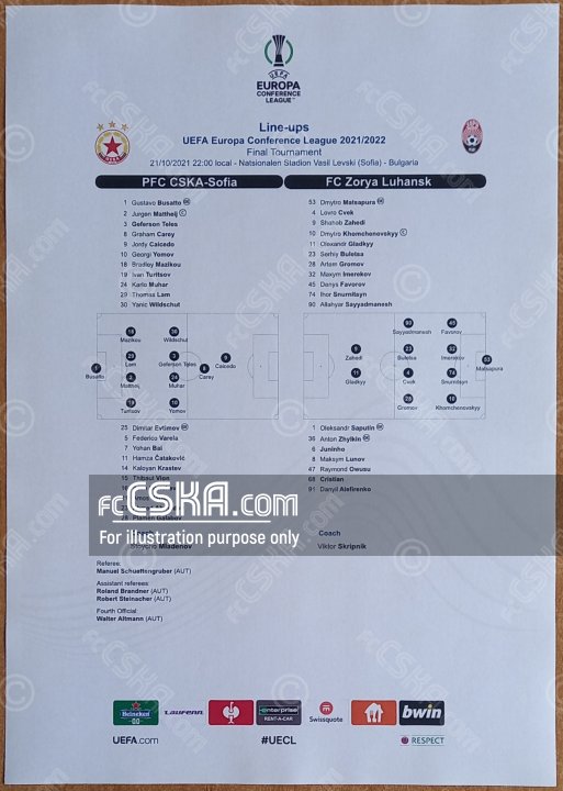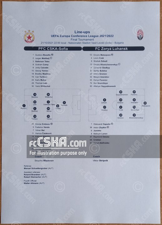 CSKA lost against Zorya (Lugansk) with result 0:1 in match from 3rd round of Conference League 2021/22 - Group „C“ played on 21 October 2021 at 22:00 on „Vasil Levski“ stadium, in Sofia.