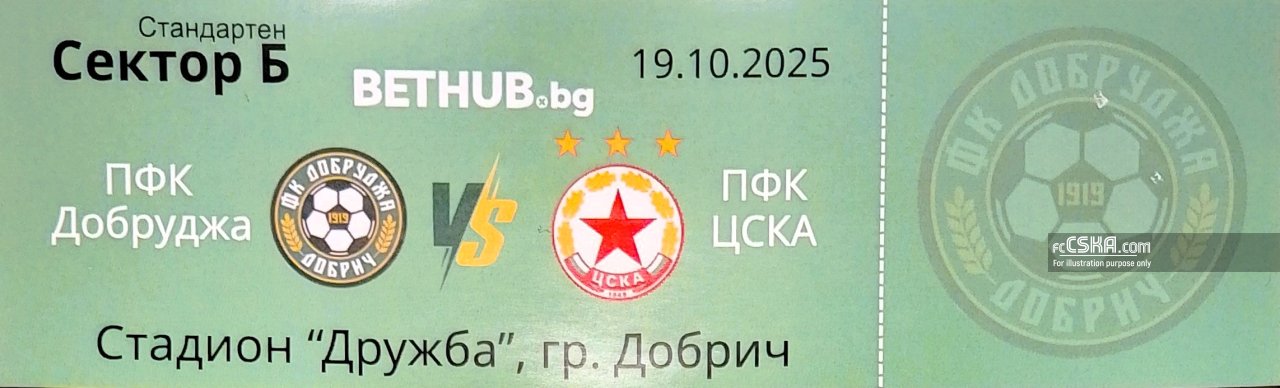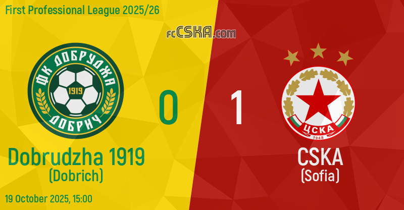 CSKA won against Dobrudzha 1919 (Dobrich) with result 0:1 in match from 12th round of First Professional League 2025/26 played on 19 October 2025 at 15:00 on „Druzhba“ stadium, in Dobrich. goalscorer for the army men was Ioannis Pittas (17′).
