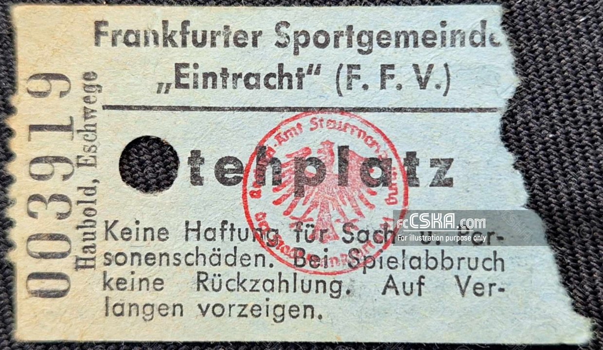 CSKA „Cherveno zname“ draw against Eintracht (Frankfurt) with result 0:0 in match from Friendly games 1965/66 played on 27 July 1965 on „Riederwaldstadion“ stadium, in Frankfurt.