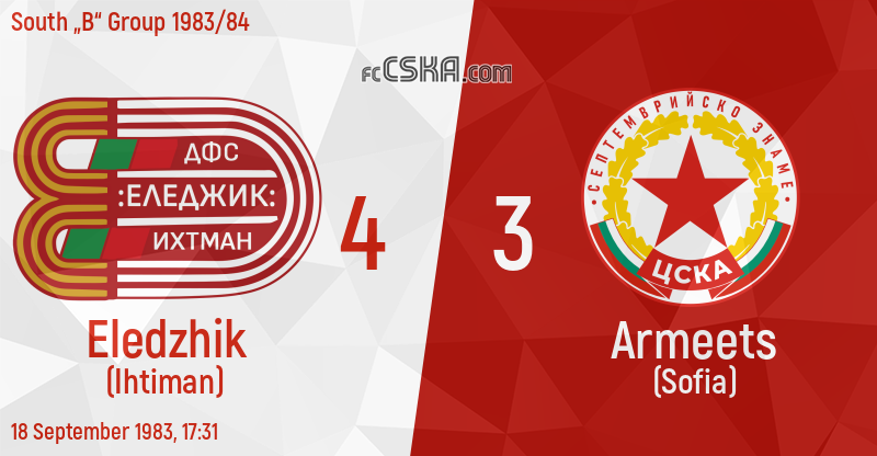 Armeets Sf lost against Eledzhik (Ihtiman) with result 4:3 in match from 5th round of South „B“ Group 1983/84 played on 18 September 1983 at 17:31