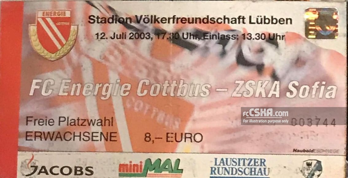 CSKA lost against Energie (Cottbus) with result 3:1 in match from Friendly games 2003/04 played on 12 July 2003 at 18:30 goalscorer for the army men was Velizar Dimitrov (44′ from penalty).