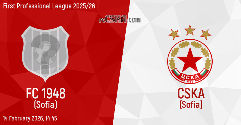 CSKA will play with FC 1948 in match from 21st round of First Professional League 2025/26 on 14 February 2026 at 14:45 on „Bistritsa“ stadium, in Bistritsa. the match will translated live on „Diema sport”.