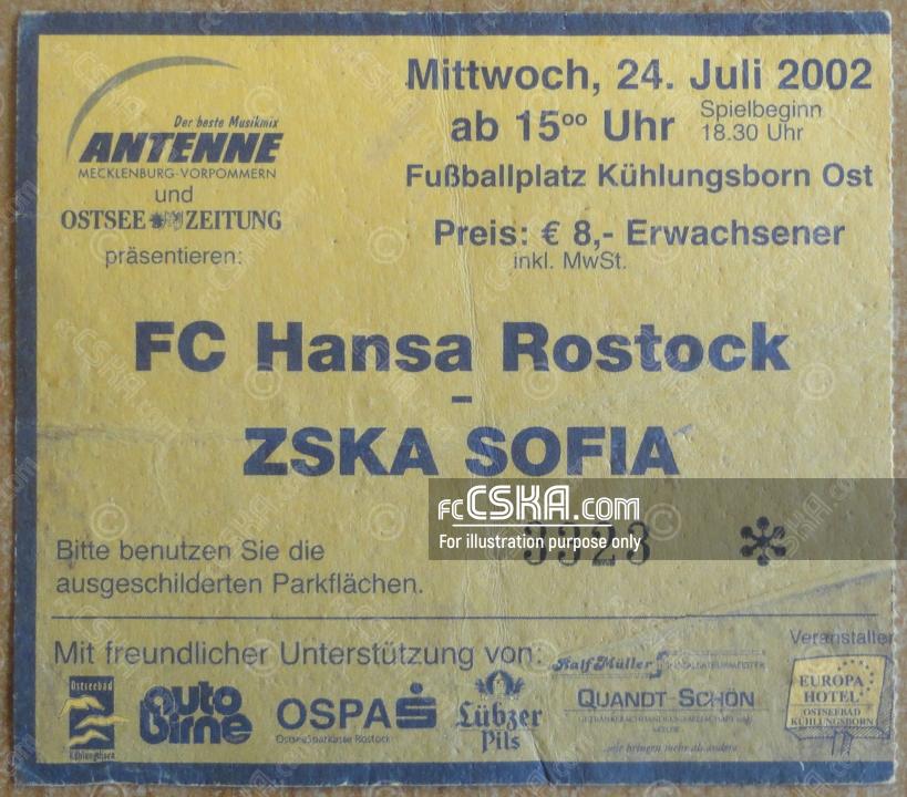 CSKA lost against FC Hansa (Rostock) with result 1:0 in match from Friendly games 2002/03 played on 24 July 2002 at 19:30