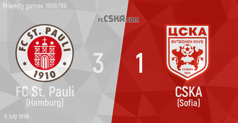 CSKA lost against FC St. Pauli (Hamburg) with result 3:1 in match from Friendly games 1998/99 played on 8 July 1998 on „Krückaustadion“ stadium, in Elmshorn.