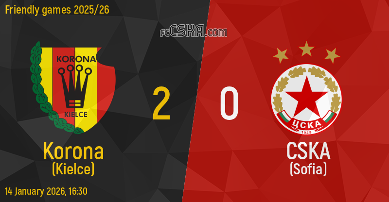 CSKA lost against Korona (Kielce) with result 2:0 in match from Friendly games 2025/26 played on 14 January 2026 at 16:30 on „Titanic Lara 1“ stadium, in Lara.