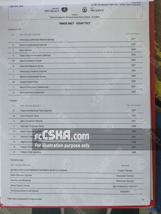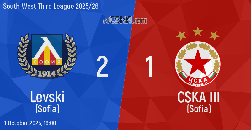 CSKA III lost against Levski II (Sofia) with result 2:1 in match from 6th round of South-West Third League 2025/26 played on 1 October 2025 at 16:00 on „Vivacom arena - Georgi Asparuhov“ stadium, in Sofia.