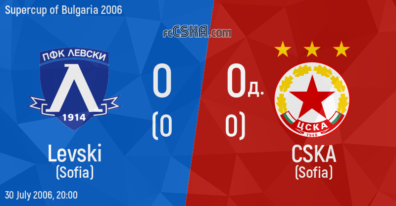 CSKA draw against Levski (Sofia) with result 0:0 in match from Final of Supercup of Bulgaria 2006 played on 30 July 2006 at 20:00 on „Vasil Levski“ stadium, in Sofia. goalscorers for the army men were Eugen Trică (127′ from penalty), Yordan Todorov (127′ from penalty) and Florentin Petre (127′ from penalty).