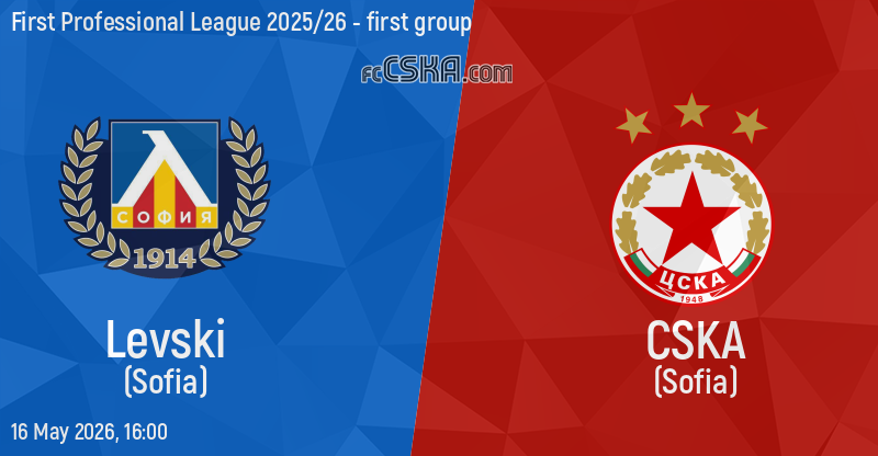CSKA will play with Levski in match from 35th round of First Professional League 2025/26 - first group on 16 May 2026 at 16:00 on „Vasil Levski“ stadium, in Sofia. the match will translated live on „Diema sport”.