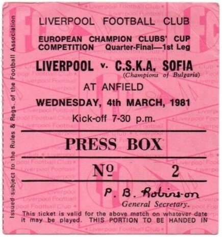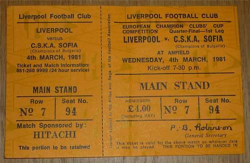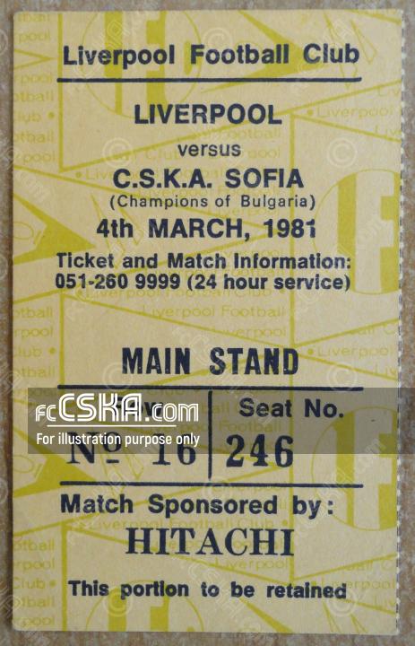 CSKA „Septemvriysko zname“ lost against Liverpool with result 5:1 in match from Quarterfinal — First Leg of European Champion Clubs' Cup 1980/81 played on 4 March 1981 at 21:30 on „Anfield“ stadium, in Liverpool. goalscorer for the army men was Tsvetan Yonchev (57′).