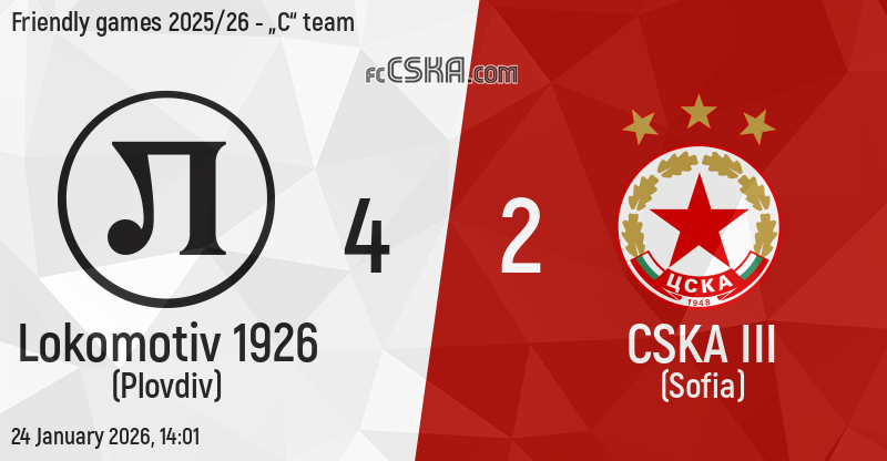 CSKA III lost against Lokomotiv 1926 II (Plovdiv) with result 4:2 in match from Friendly games 2025/26 - „C“ team played on 24 January 2026 at 14:01