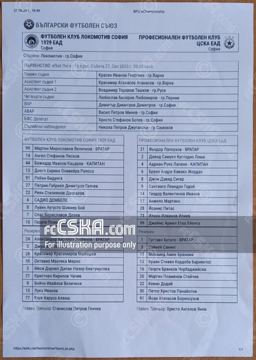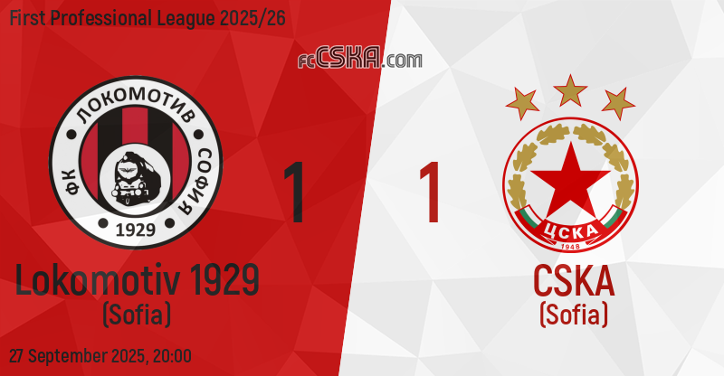 CSKA draw against Lokomotiv 1929 (Sofia) with result 1:1 in match from 10th round of First Professional League 2025/26 played on 27 September 2025 at 20:00 on „Lokomotiv“ stadium, in Sofia. goalscorer for the army men was Ioannis Pittas (43′).