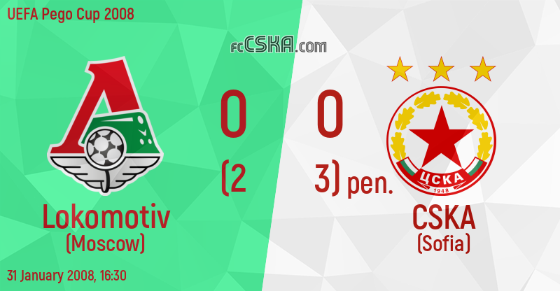 CSKA draw against Lokomotiv (Moscow) with result 0:0 in match from Final of UEFA Pego Cup 2008 played on 31 January 2008 at 16:30 goalscorers for the army men were Marquinhos (92′ from penalty), Florentin Petre (92′ from penalty) and José Garcés (92′ from penalty).