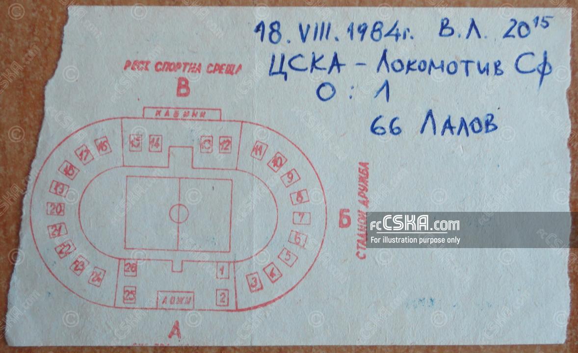 CSKA „Septemvriysko zname“ lost against Lokomotiv (Sofia) with result 1:0 in match from 2nd round of „А“ Republican Football Group 1984/85 played on 18 August 1984 at 20:15 on „Vasil Levski“ stadium, in Sofia.