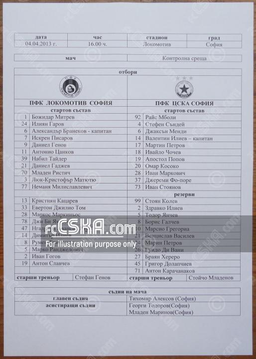 CSKA won against Lokomotiv (Sofia) with result 1:3 in match from Friendly games 2013/14 played on 4 April 2014 at 16:00 on „Lokomotiv“ stadium, in Sofia. goalscorers for the army men were Ivaylo Chochev (7′), Valentin Iliev (14′) and Martin Petrov (41′).