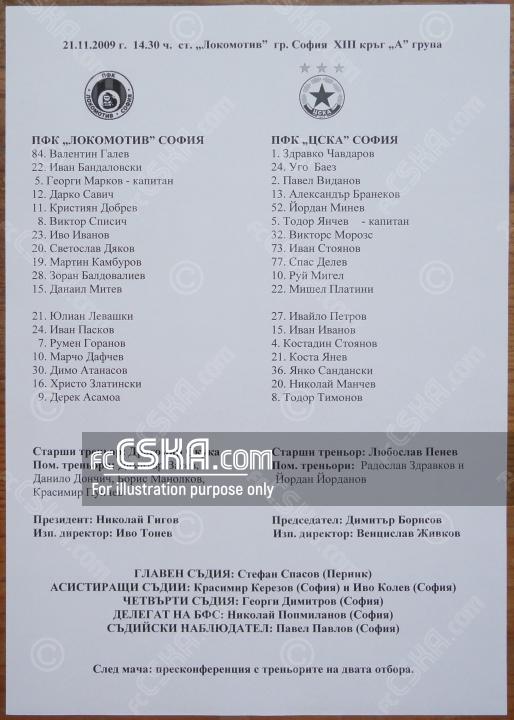CSKA draw against Lokomotiv (Sofia) with result 2:2 in match from 13th round of „А“ Football Group 2009/10 played on 21 November 2009 at 14:30 on „Lokomotiv“ stadium, in Sofia. goalscorers for the army men were Ivan Stoyanov (13′ from penalty) and Michel Platini (24′).