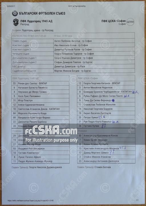 CSKA draw against Ludogorets 1945 (Razgrad) with result 1:1 in match from 34th round of First Professional League 2016/17 - first six played on 20 May 2017 at 20:00 on „Ludogorets Arena“ stadium, in Razgrad. goalscorer for the army men was Fernando Karanga (63′).