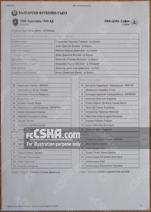 CSKA lost against Ludogorets 1945 (Razgrad) with result 3:2 in match from 28th round of First Professional League 2017/18 - first six played on 6 April 2018 at 17:00 on „Ludogorets Arena“ stadium, in Razgrad. goalscorers for the army men were Kiril Despodov (45′) and Rúben Pinto (71′).