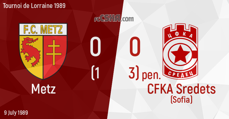 CFKA „Sredets“ draw against Metz with result 0:0 in match from Third place play-off of Tournoi de Lorraine 1989 played on 9 July 1989 on „Saint-Symphorien“ stadium, in Metz.