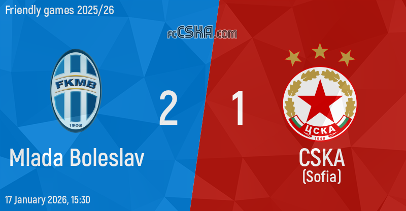 CSKA lost against Mlada Boleslav with result 2:1 in match from Friendly games 2025/26 played on 17 January 2026 at 15:30 on „Cornelia“ stadium, in Belek. goalscorer for the army men was Mohammed Brahimi (91′ from penalty).
