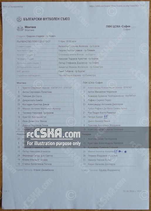 CSKA won against Montana 1921 (Montana) with result 0:2 in match from 11th round of First Professional League 2016/17 played on 21 October 2016 at 20:00 on „Gradski“ stadium, in Lovech. goalscorer for the army men was Milcho Angelov (54′ and 80′).