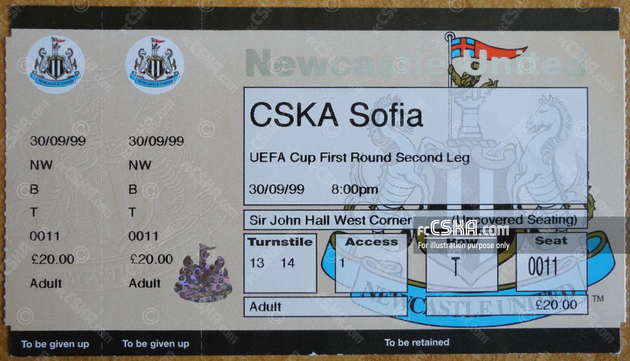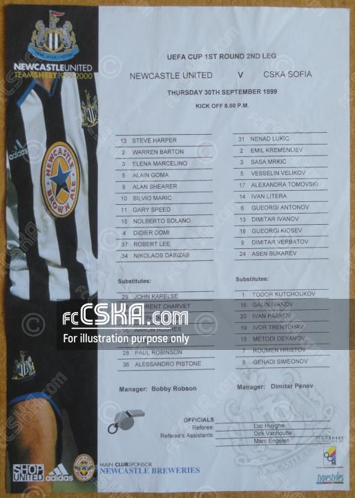 CSKA draw against Newcastle United with result 2:2 in match from First round — Second Leg of UEFA Cup 1999/00 played on 30 September 1999 at 22:00 on „St James' Park“ stadium, in Newcastle. goalscorers for the army men were Ivan Litera (30′) and Genadi Simeonov (94′).