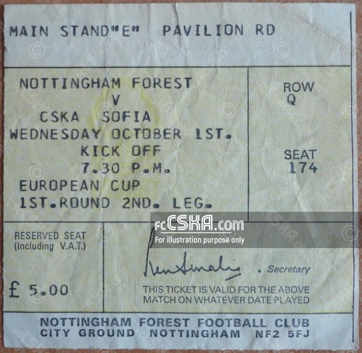 CSKA „Septemvriysko zname“ won against Nottingham Forest F.C. with result 0:1 in match from Round of 32 — Second Leg of European Champion Clubs' Cup 1980/81 played on 1 October 1980 on „City Ground“ stadium, in West Bridgford. goalscorer for the army men was Ruzhdi Kerimov (32′).