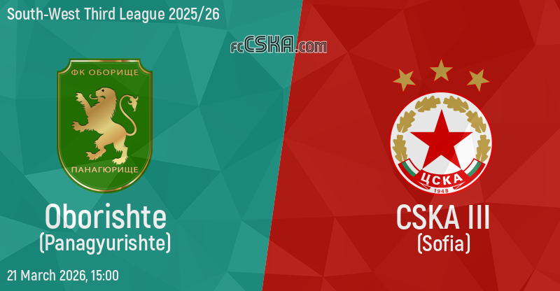 CSKA III will play with Oborishte in match from 24th round of South-West Third League 2025/26 on 21 March 2026 at 15:00 on „Orcho voyvoda“ stadium, in Panagyurishte.