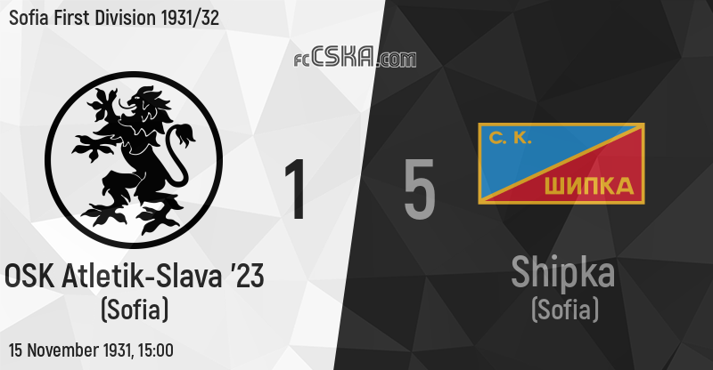 AS 23 lost against Shipka (Sofia) with result 1:5 in match from 4th round of Sofia First Division 1931/32 played on 15 November 1931 at 15:00
