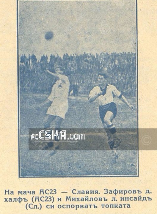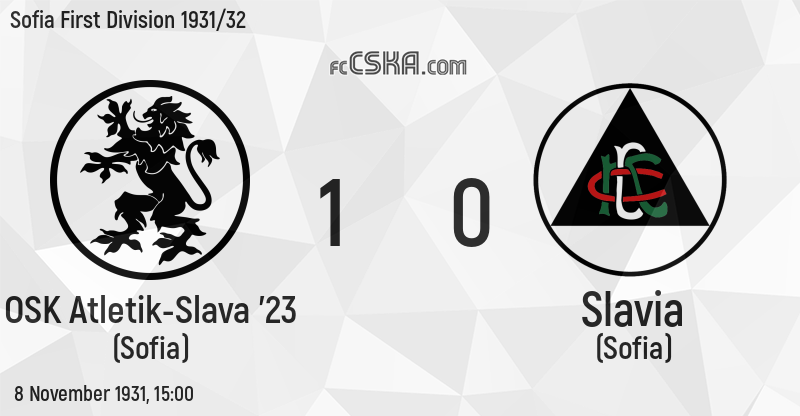 AS 23 won against Slavia (Sofia) with result 1:0 in match from 3rd round of Sofia First Division 1931/32 played on 8 November 1931 at 15:00 on „Slavia old“ stadium, in Sofia.