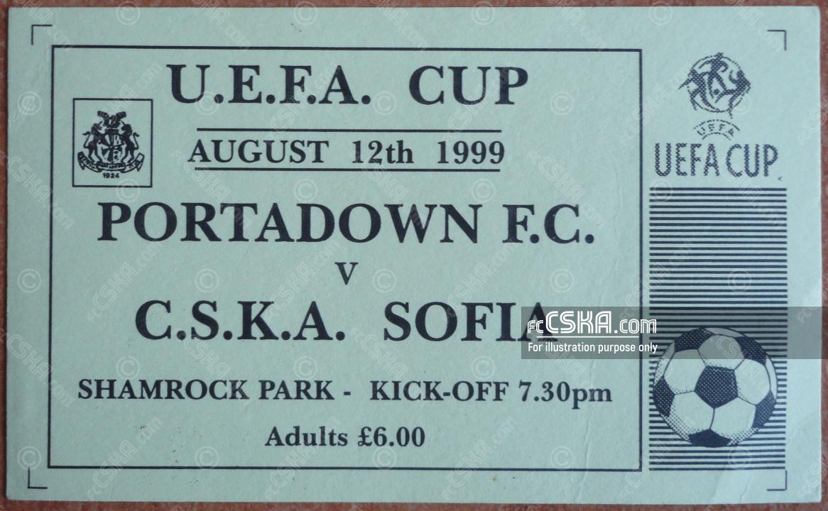 CSKA won against Portadown F.C. with result 0:3 in match from Qualifying round — First Leg of UEFA Cup 1999/00 played on 12 August 1999 goalscorers for the army men were Vladimir Manchev (1′), Saša Kovačević (78′) and Asen Bukarev (85′).