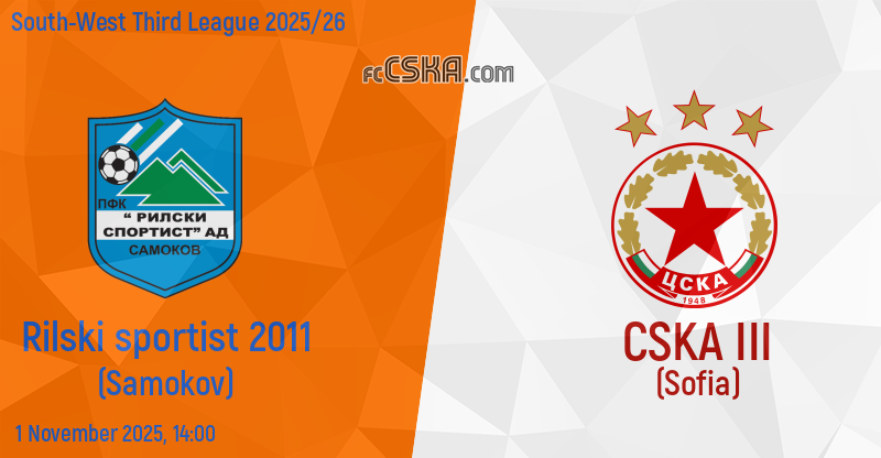 CSKA III will play with Rilski sportist in match from 15th round of South-West Third League 2025/26 on 1 November 2025 at 14:00