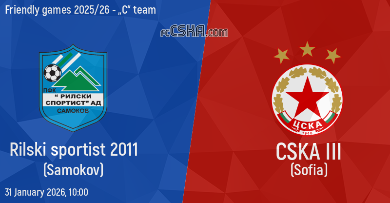 CSKA III will play with Rilski sportist in match from Friendly games 2025/26 - „C“ team on 31 January 2026 at 10:00
