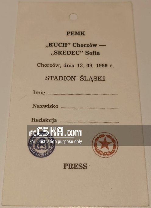 CFKA „Sredets“ draw against Ruh (Chorzów) with result 1:1 in match from Round of 32 — First Leg of European Champion Clubs' Cup 1989/90 played on 13 September 1989 at 17:00 goalscorer for the army men was Lyuboslav Penev (18′).