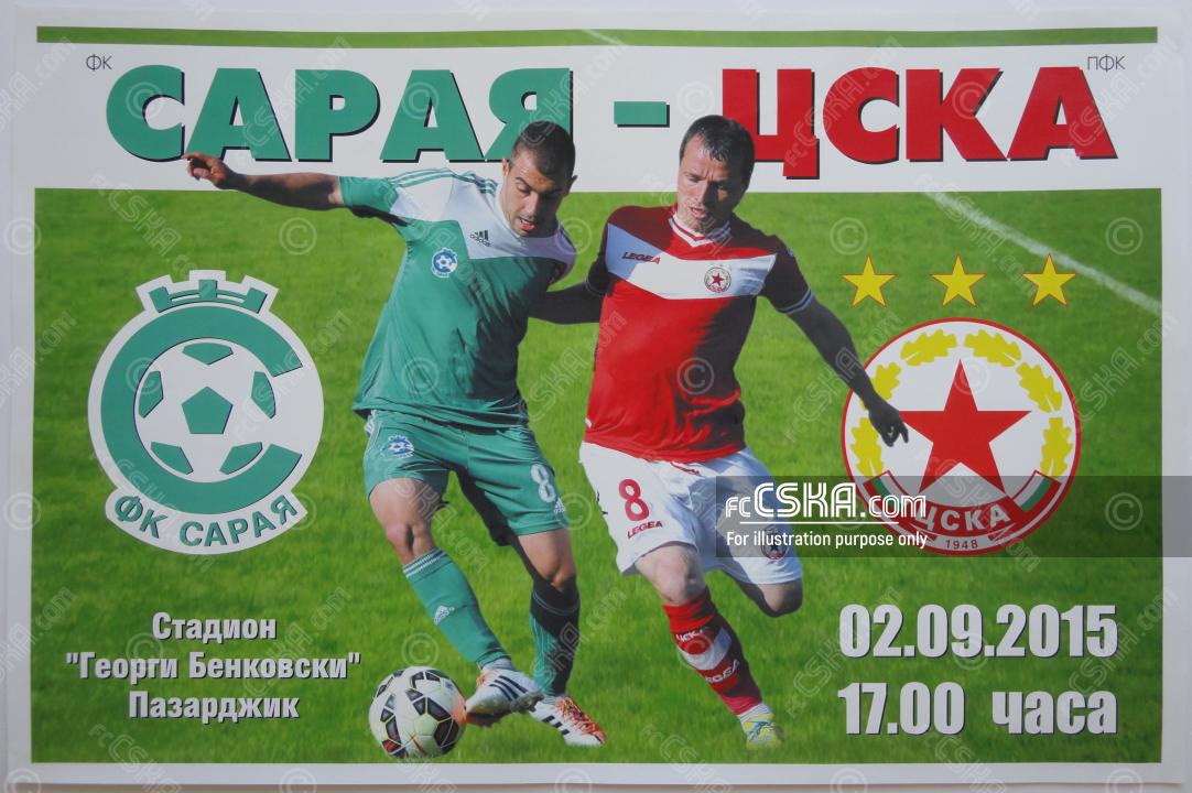CSKA won against Saraya (Saraya) with result 0:11 in match from Preliminary faze — third round of Cup of Bulgaria 2015/16 played on 2 September 2015 at 17:00 on „Georgi Benkovski“ stadium, in Pazardzhik. goalscorers for the army men were Viktor Raychev (2′), Kostadin Hazurov (18′, 37′ and 44′), Radoy Bozhilov (42′ and 48′), Kiril Dinchev (45′), Preslav Yordanov (52′), Nikolay Tsvetkov (85′) and Milen Kikarin (88′). Auto goal for the home teams scored Lazar Kostov[1] (31′).
