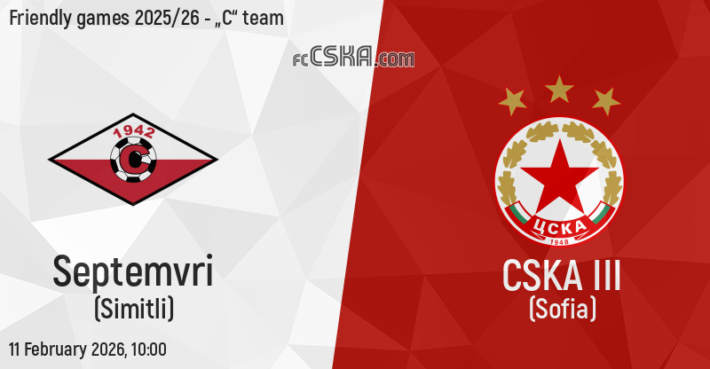 CSKA III will play with Septemvri Sim in match from Friendly games 2025/26 - „C“ team on 11 February 2026 at 10:00