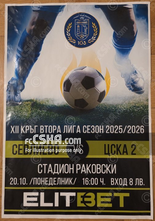 CSKA II won against Sevlievo (Sevlievo) with result 1:2 in match from 12th round of Second Professional League 2025/26 played on 20 October 2025 at 16:00