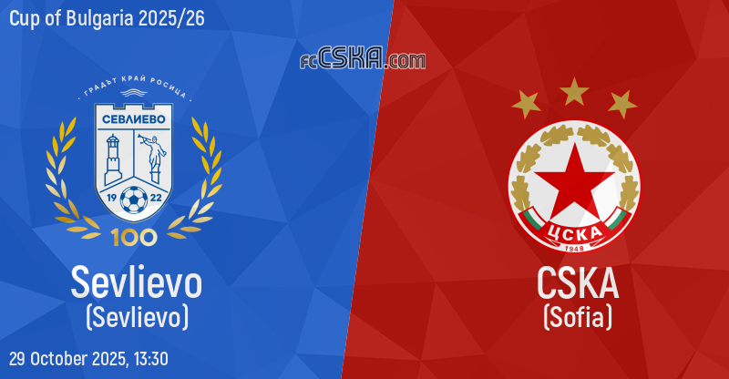 CSKA will play with Sevlievo in match from Round of 32 — first round of Cup of Bulgaria 2025/26 on 29 October 2025 at 13:30 the match will translated live on „Diema sport”.