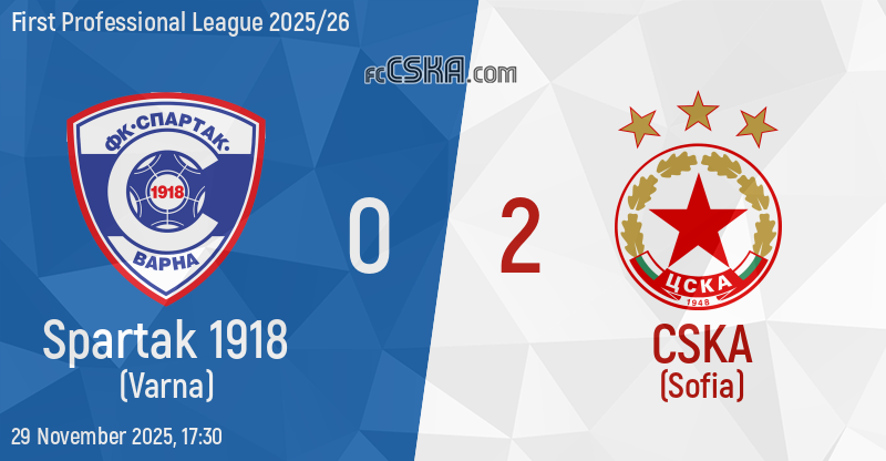 CSKA is playing with Spartak Vn in match from 17th round of First Professional League 2025/26 on 29 November 2025 at 17:30 the match is translated live on „Diema sport”.
